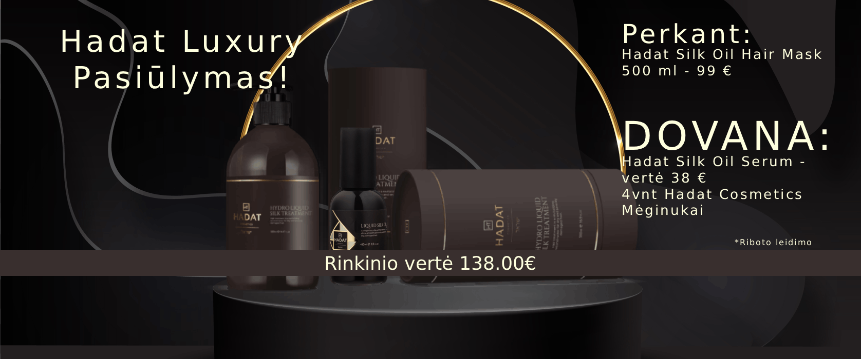 HADAT LUXURY PASIULYMAS! Hydro silk plaukų kaukė 500 ml ir DOVANA Hadat Cosmetics plaukų aliejus 60 ml, mėginukai.