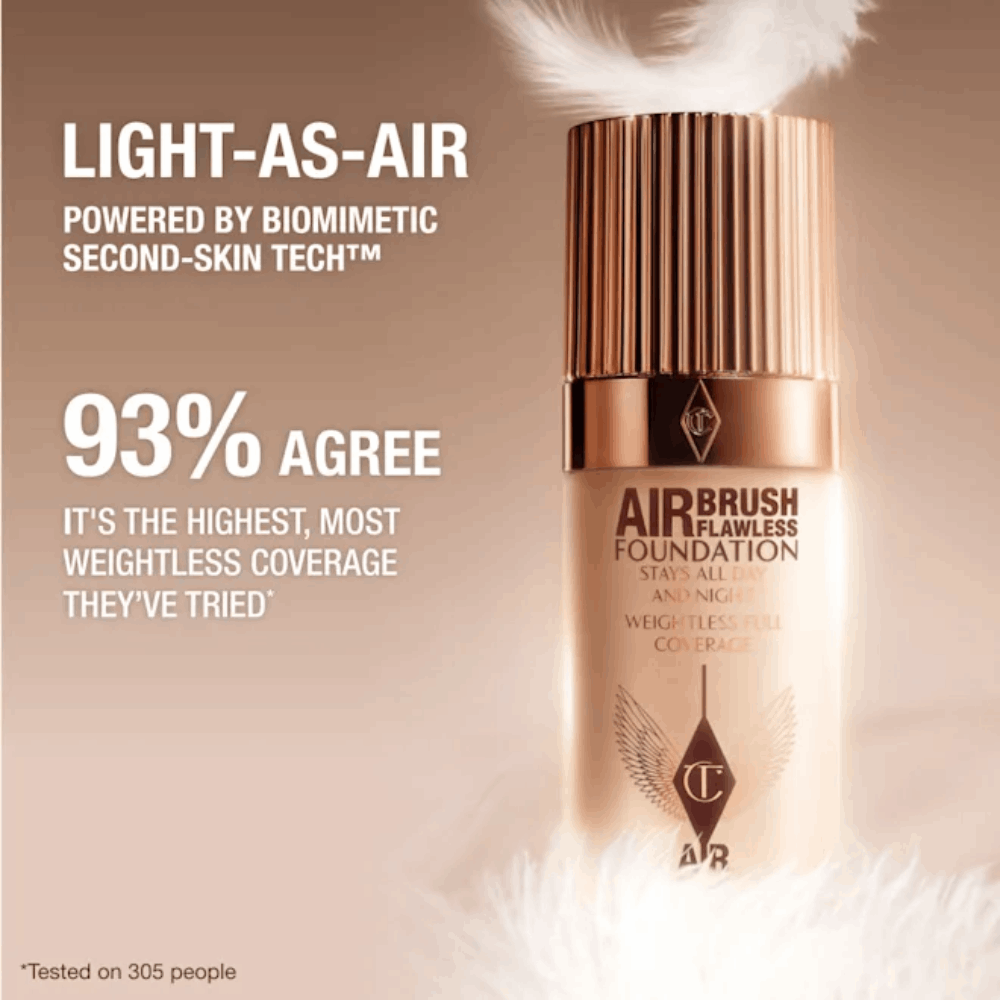 Šepetėliu arba kempinėle tepkite nedidelį kiekį makiažo pagrindo Charlotte Tilbury Airbrush Flawless nuo veido vidurio išorės link ir kruopščiai išsklaidykite.